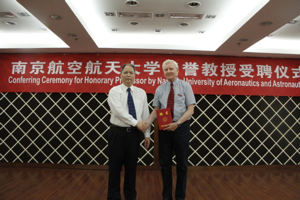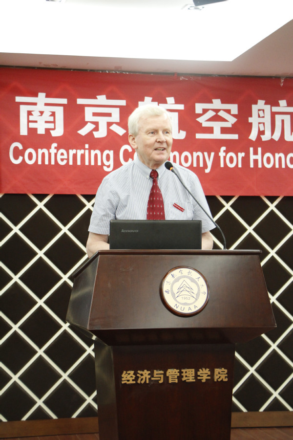 许希武副校长代表学校向Roman Slowinski院士颁发聘书并佩戴了南航校徽。Roman Slowinski院士在致辞中对学校的聘任表示十分荣幸和感谢,对这次南航成功承办首次在亚洲召开的GDN国际会议表示祝贺,并对我校近年来在科学研究、人才培养和国际合作等方面取得的成就给予了高度肯定。