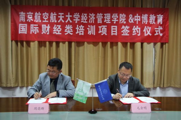 仪式上,周德群院长向与会嘉宾介绍了经管学院的发展、专业设置、人才培养情况等,他提到:多年来,学院一直秉承学科建设和在职培训“两手都要抓”“两手都要硬”的原则,非常重视学生的学术能力和实践能力的培养,也通过在职培训紧跟社会发展及需求,不断提高学院师资队伍和教师教学水平。这次与中博教育的合作,可以使双方更加深入地进行资源共享,共同开发课程、案例,共同提高在业界的口碑和经验。中博教育董事长毛金明回顾了创业十余年的历程,他非常认同南航学生“实干、创新、合作”的精神,也认为南航经管学院的办学理念,与中博教育非常吻合,希望签约后,能够通过中博项目为南航学子提供职前培训和向大企业推荐的机会。毛金明董事长表示中博教育将以本次国际财经类项目合作为契机,本着以为学员服务的原则,与院方共同培养更多国际财经类人才。