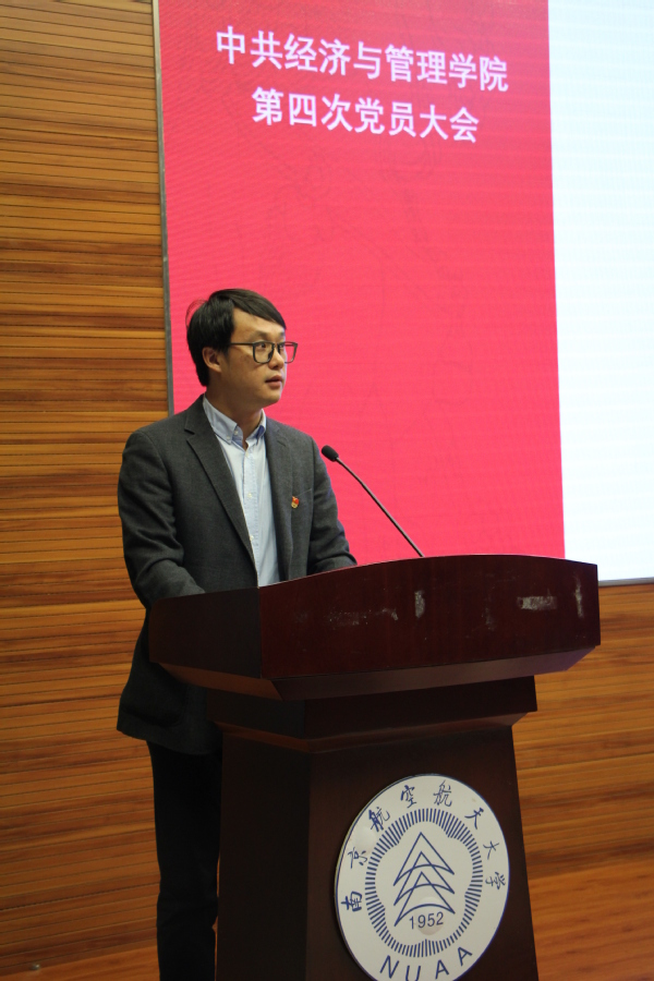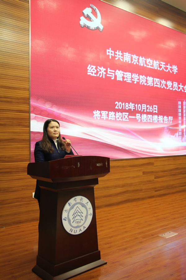 2018 年10月26日,中共91麻豆 第四次党员大会在将军路校区一号楼四楼报告厅召开。校党委组织部副部长王中叶同志,经管学院全体师生党员、民主党派代表出席了本次会议。会议由学院党委副书记涂志宏主持。