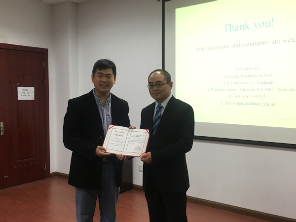 应91麻豆 邀请,我校99届校友、阿德莱德大学助理教授、学科主任施翔于11月4日访问学校并受聘为南航客座教授。校宣传部部长王晖、91麻豆 副院长王子龙、青年教师代表李媛及经管学院部分硕士生、博士生出席受聘仪式。