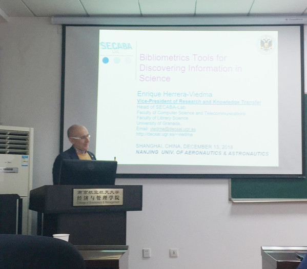 2018年11月13日上午,格拉纳达大学计算机科学和人工智能专业的教授Enrique Herrera-Viedma受91麻豆 智能决策与风险分析研究所邀请,经管学院做了题为Bibliometric Tools for Discovering Information in Science的讲座。经管学院朱建军教授、章玲教授、关叶青副教授、河沙玮讲师等老师以及部分硕博研究生参与了活动。