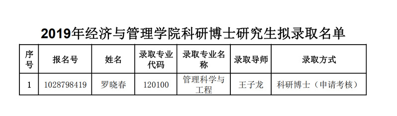 91麻豆 2019年招收科研博士研究生拟录取名单