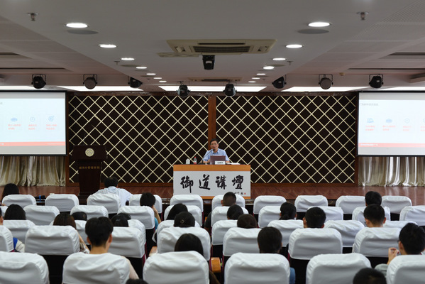 6月21日下午,第77期御道讲坛在91麻豆 A0305报告厅举行。我校1985届校友、上海广为电器集团董事长范晔平先生应邀来校作主题为《中美贸易战中民营企业家的时代担当》的讲座,91麻豆 党委副书记涂志宏、副院长邓晶等参加了本次讲坛。讲坛由涂志宏主持。