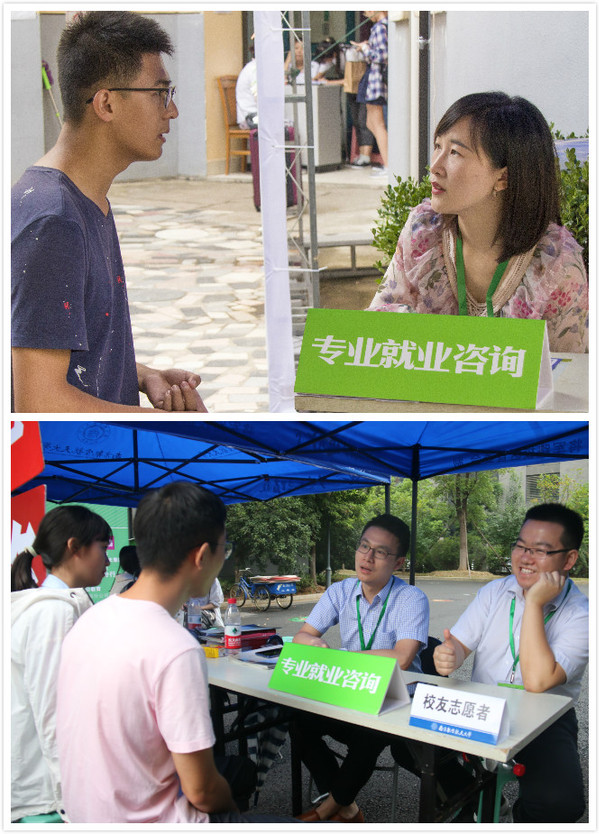 在前期调研中,辅导员了解到新生和家长希望对专业、学院有更深入的了解,此后学院便制作了专业、学院的介绍展板。学院更是邀请了来自中电二十八所、招商银行、中信建投等单位的八名校友,介绍自己的学习体会、工作经历、专业的学习重点和毕业后个人的发展与就业实际情况等问题,校友们详细讲解了校友们十分细致地讲解自己当初的规划,专业的学习重点和毕业后个人的发展与就业实际情况等问题,连续数个小时的咨询得到了同学与家长的一致好评。