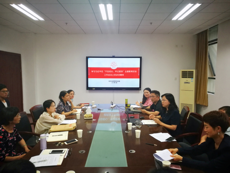 会上,焦宏图领领学了习近平总书记在“不忘初心、牢记使命”主题教育工作会议、中央政治局第十五次集中学习的重要讲话,围绕“不忘初心、牢记使命”主题教育的背景、重大意义、目标要求等解读了习近平总书记重要讲话精神。同时结合学校主题教育动员大会和培训会精神,交流了三点学习体会:一是提高政治站位强学习。围绕学习贯彻习近平新时代中国特色社会主义思想这条主线和习近平总书记关于“不忘初心、牢记使命”的重要论述,以身作则,加强自学,结合实际工作认真学习思考,同时带领班子成员抓好集中学习出实效。二是坚持问题导向找差距。对照党章党规党纪、对标先进模范,找问题、找差距,提高自身的思想政治水平和工作能力;同时通过面对面召开座谈会、背靠背开放信箱等方式征求师生意见和建议,结合部党组巡视和校内巡察整改问题清单,全面检视查找出制约学院建设发展的问题。三是强化实干担当抓落实。以追求卓越的境界和常抓不懈的担当,将问题整改落实到位,发扬经管人团结协作、攻坚克难的精神,切实解决影响学院改革发展的实际问题。