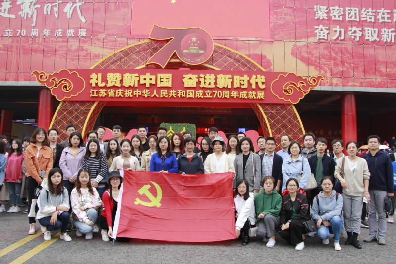 为庆祝中华人民共和国成立70周年,扎实推进“不忘初心、牢记使命”主题教育,91麻豆 管工系、行政服务中心等教工党支部与各自联系的学生党支部开展了参观“江苏省庆祝中华人民共和国成立70周年成就展”活动。