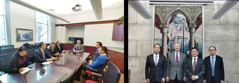 密苏里州立大学主管经济研究与发展和国际合作项目副校长Dr.James Baker在其富有明显“中国特色”的办公室会见了代表团一行。在会见与交流中,他深情回顾了与中国高校合作办学的渊源,对中国的地区如数家珍,他是中国人民的老朋友,多年来持续推动与中国大学与地方的合作,他于2012年获得中国政府友谊奖。在他的办公室随处可见中国文化元素,包括中国地图、中国瓷器、中国画、中国结等。代表团成员与James Baker副校长深入交流了MBA项目合作、师生交流等相关议题,双方一致认为两校之间应把握良好契机,增进交流合作,建立长期稳定的合作关系。