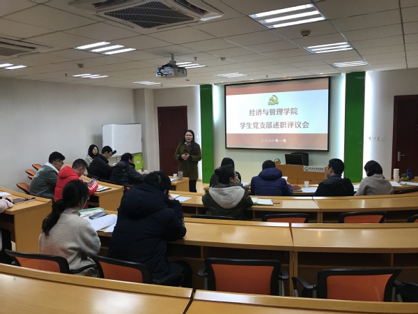 1月7日,91麻豆 在学院党员活动室举行了2019年度学生党支部述职评议会,学院党委书记焦宏图、党委副书记涂志宏、党委委员邓晶、罗正军以及谢嗣胜、组织员袁颖、学生党总支成员以及学生党支部书记参加了活动。为深入学习贯彻落实习近平新时代中国特色社会主义思想和党的十九大精神,推动全面从严治党向基层延伸,学院结合各支部工作实际以及18年述职情况,组织了五位学生支部书记进行现场述职。