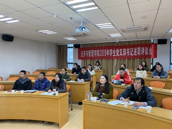 述职过程中,五位支部书记从支部基本情况、推进中心工作、党员教育管理监督、组织宣传、存在问题及整改措施等方面对支部一年来的工作进行了总结梳理,其中本科生17级党支部书记康冲介绍了本年度支部开展的“我和我的祖国”红色原创话剧、快闪、“经管24小时”视频拍摄等活动,汇报了校优秀暑期党员实践团队、最美学习笔记等荣誉成果;研究生18级第二党支部书记张秋彧介绍了支部在推广“学习强国”APP使用上的心得经验;研究生18级第三党支部书记俞佳炜在述职过程中分享了支部工作手册记录的想法与建议。与此同时,各支部认真深刻地分析了各支部存在的问题以及整改措施。各书记汇报内容充实,现场学院党委书记和各位党委委员分别就每位书记的汇报内容逐一进行了针对性的点评。