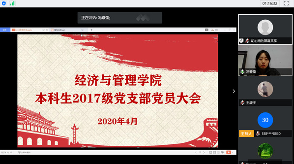 为响应习近平总书记在对北京大学援鄂医疗队回信中对青年提出的期望和要求,提升党支部成员的奉献意识、家国情怀,2020年3月18日,91麻豆 本科生17级党支部举行“让青春在党和人民最需要的地方绽放绚丽之花”线上党日活动,学院党委副书记涂志宏参加会议。