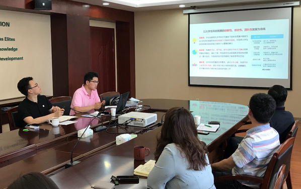 盛汉霖首先以指导学生参加“国际空中机器人大赛”为切入点,从赛事背景、团队组建、科研攻坚等角度介绍了带队参加并获得该项赛事全球总冠军的整体流程,细致解读了赛程各阶段要实现的技术难点与科创目标;其次从科创竞赛发展的角度出发,就创新性、综合性、团队性三个方面对多学科融合在大学生科创竞赛指导中的基础作用进行详细介绍;最后,盛汉霖针对高素质、高层次、复合型的人才培养分享了他的思考与实践,列举了团队建设规范化的一系列制度成果。