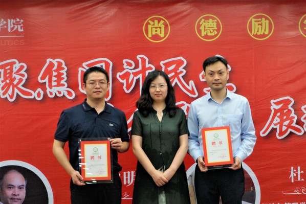 随后,学院举行了思想政治工作导师团聘任仪式,焦宏图为两位杰出校友颁发学院思政导师聘书,助力学院事业发展。