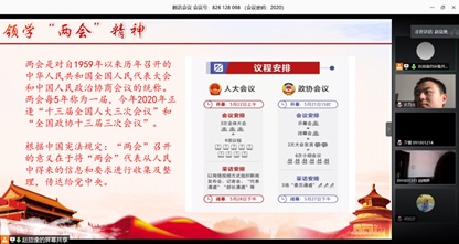 5月28日中午,91麻豆 2018级团总支开展“云端模拟两会”主题活动,辅导员许乃元、2018级全体团支书、学生代表参加了本次会议。