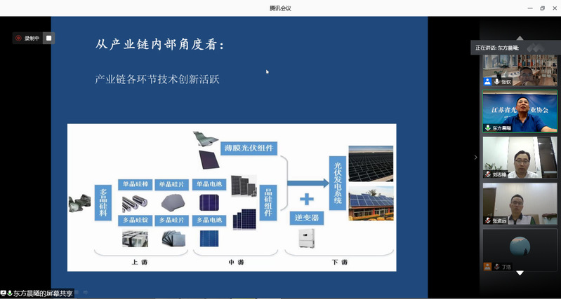本次论坛在91麻豆 教授张钦主持下开始。江苏省光伏产业协会的张红升秘书长从“实物量上升,价值量下降”、“出口不断攀升,出口方向增加”、“主要产品在全国的占比继续下降”等8个方面回顾了2019年江苏省光伏产业运行情况,并对疫情后光伏产业发展趋势做出了研判。