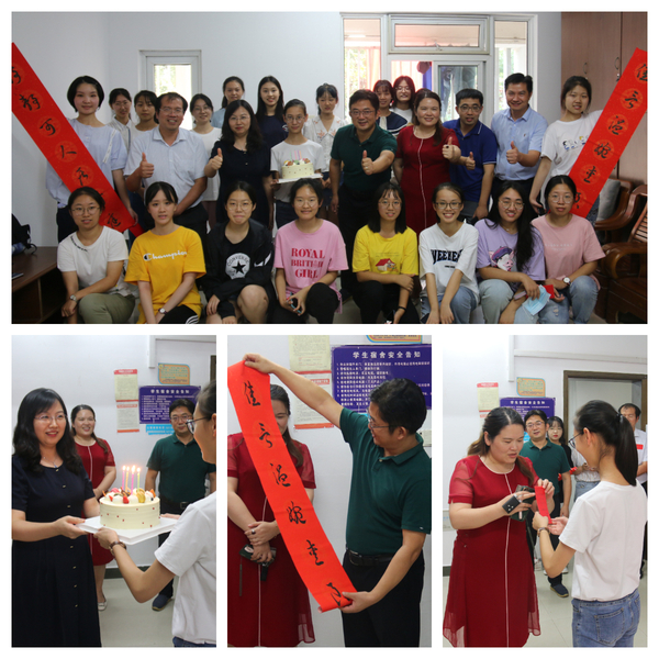 报到当天为新生柯思凡、马可欣的生日,学院领导为其准备了融合寝室四位同学名字的专属对联、内含经管咖啡厅特色咖啡券的红包,希望通过这种方式,给予新生家的氛围,让他们在外的第一个生日能够留下特别的回忆。