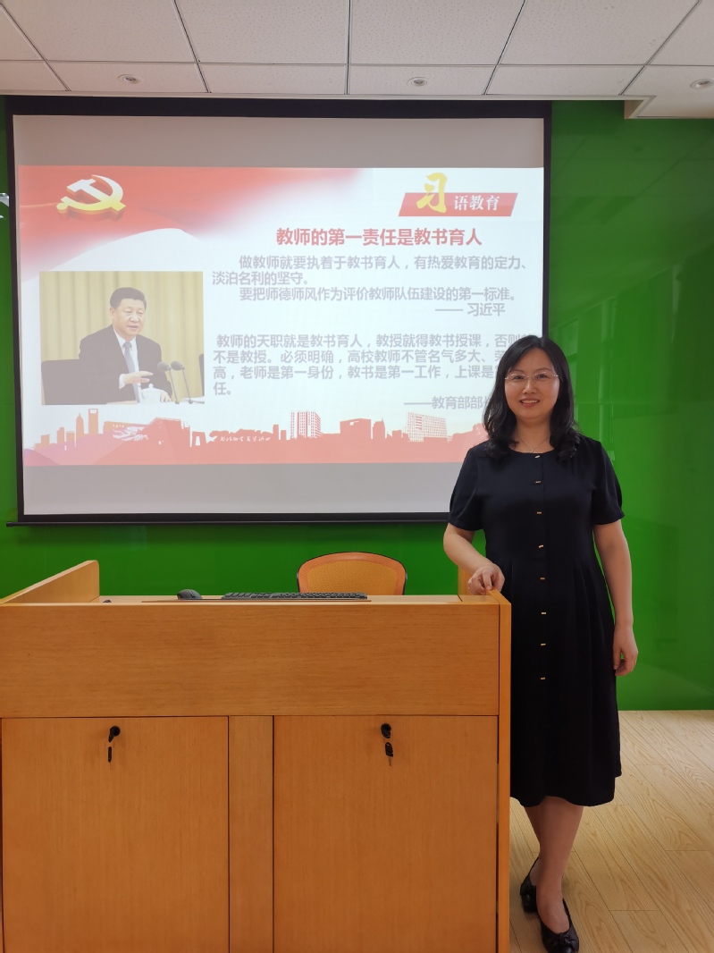 焦宏图书记首先解读了《中共91麻豆 委员会关于加强和改进教师思想政治工作的意见》和《91麻豆 教职工师德“一票否决”实施办法(试行)》这两个文件,向各位老师明确了党和国家对于教师的宏观要求,又从学校发展实际及教师发展需求的角度,阐明了加强和改进教师思想政治工作的重要性和必要性;接着,她在解读教职工职业行为准则的基础上,又介绍了学校教师职业道德考核、教师培训体系、教师荣誉体系等建设现状。