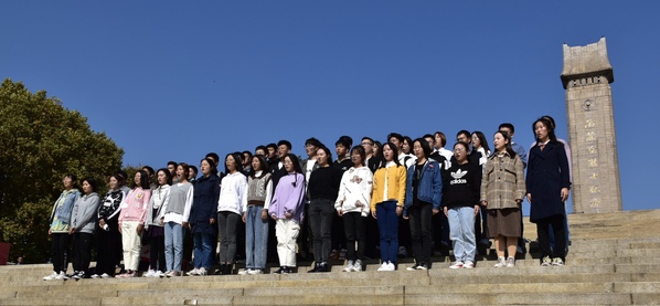 随后,同学们来到雨花台革命烈士纪念碑,2020级学生孙硕对参观学习进行了整体总结。他表示,作为新时代青年,要向革命先烈学习志存高远的信仰力量、英勇无畏的牺牲精神、舍身为民的高尚情怀和公而忘私的道德情操,立鸿鹄志,做奋斗者。全体人员列队碑前合唱《国家》。