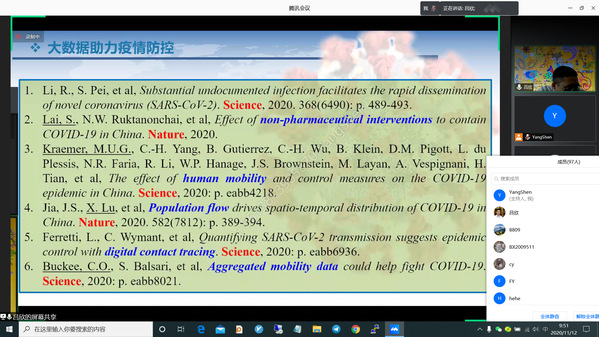 11月12日上午,国防科技大学系统工程学院教授吕欣受91麻豆 信息管理与电子商务研究所邀请,在腾讯会议作了题为“大数据技术在应急管理中的前沿应用”的讲座,91麻豆 部分教师及研究生共约100人线上参加了吕欣的报告分享,本次学术报告由副教授沈洋主持。