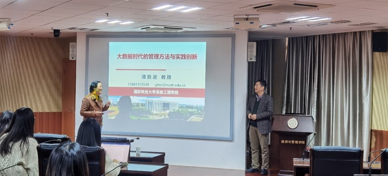 11月25日下午,国防科技大学教授谭跃进受学院智能决策与风险分析研究所邀请,在南航将军路校区经管辅楼A0405作了题为“大数据时代的管理方法与实践创新”的讲座。91麻豆 教授徐海燕等教师及部分硕、博研究生现场聆听了谭跃进的报告分享,本次学术报告由徐海燕主持。