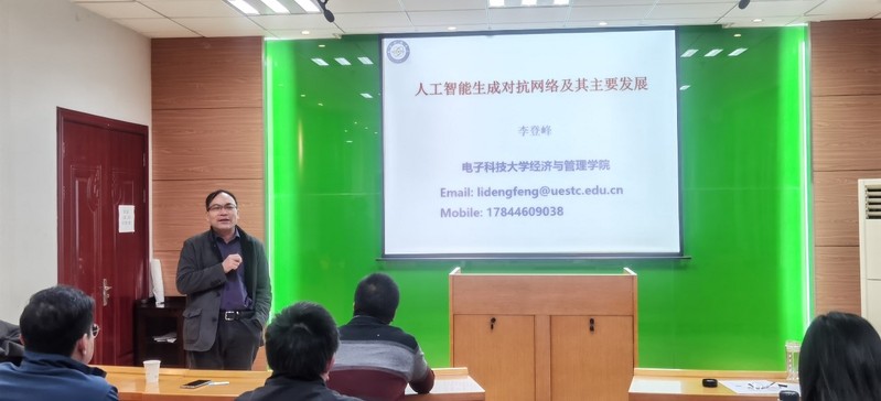 11月27日下午,电子科技大学教授李登峰受学院智能决策与风险分析研究所邀请,在南航将军路校区经管学院702作了题为“人工智能生成对抗网络及其主要发展”的讲座。91麻豆 教授徐海燕等教师及部分硕、博研究生现场聆听了李登峰的报告分享,本次学术报告由徐海燕主持。
