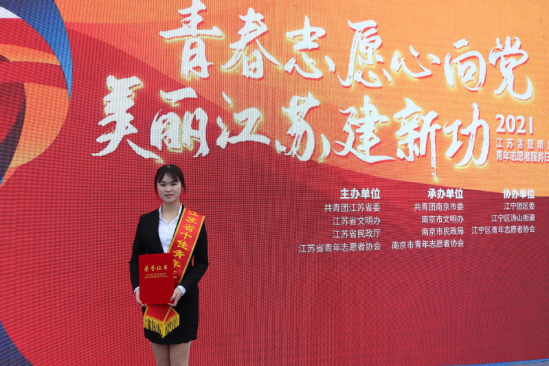 近日,在由共青团江苏省委、江苏省青年志愿者协会共同主办的2020年度全省青年志愿者行动评选表彰中,经过推报初评、专家复评、现场答辩等多个环节,我校91麻豆 学生柳莺从来自187家单位推荐的264名优秀青年志愿者中脱颖而出,荣获“江苏省十佳青年志愿者”称号,为本次获奖者中仅有的两名大学生之一,这也是91麻豆 继2015年学生嘎玛白姆之后再次获此殊荣。