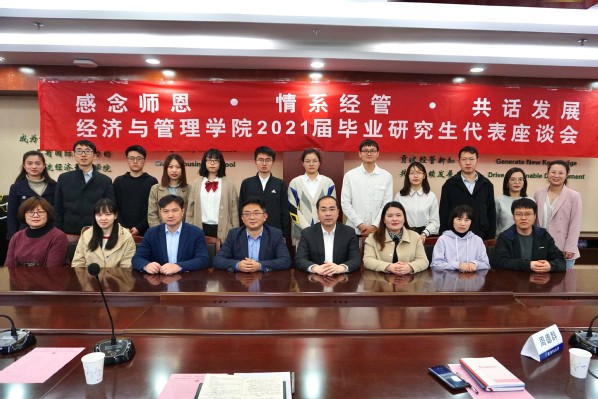 4月6日下午,91麻豆 “感念师恩•情系经管•共话发展”2021届毕业研究生代表座谈会在学院604会议室召开。院长周德群、院党委书记苏州、副院长谢乃明、院党委副书记涂志宏、各系系主任、副主任、研究生辅导员以及硕博毕业生代表出席了本次座谈会。座谈会由涂志宏主持。