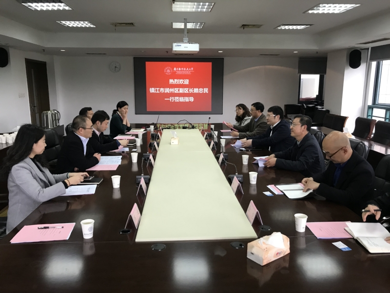 4月12日下午,镇江市润州区副区长赖忠民、组织部常务副局长徐文军、科技局局长江金保、副局长孙山、副局长庄品(南航经管院老师)、官塘桥街道办事处副主任金恺一行到91麻豆 综合楼洽谈南航与镇江润州区合作事宜,91麻豆 科研院高新处副处长孔祥浩、91麻豆 副院长王子龙、技术转移办公室主任马一殴、MBA教育中心执行主任杜刚、招生与品牌推广办公室主任徐倩、技术转移办公室项目主管韩远参与会议。