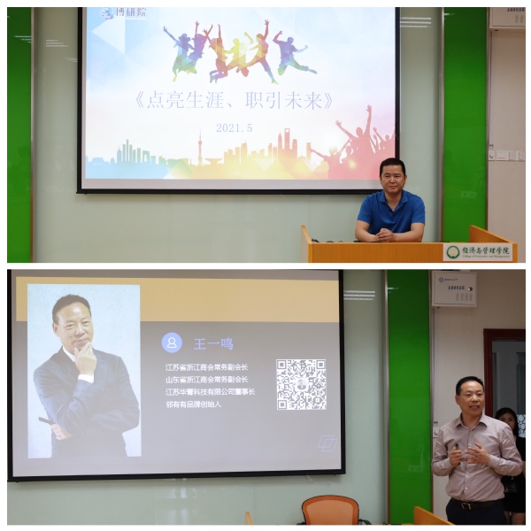 赵峥涞、王一鸣分别作了题为“点亮生涯,‘职’引未来”、“遇见最好的自己”专题讲座,阐述了职业生涯规划教育的重要意义,引导学生充分利用在校期间的学习资源与活动资源,通过企事业单位见习等方式,提前了解就业形势,调整和改善个人就业准备,及早制定职业生涯规划。
