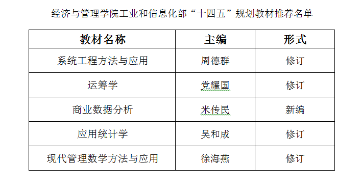 根据《工业和信息化部办公厅关于开展“十四五”规划教材立项申报工作的通知》精神,在各系推荐、个人申报的基础上,经专家组评审、学院党组织审核,确定学院工业和信息化部“十四五”规划教材推荐名单。现予以公示。