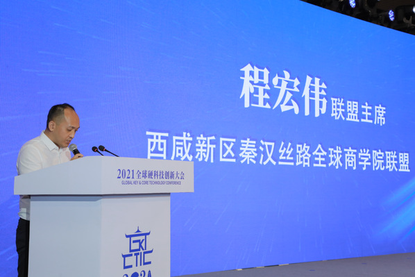 西咸新区秦汉新城科技局负责人周军、西咸新区秦汉丝路全球商学院联盟主席程宏伟为“西咸新区 · 秦汉丝路全球商学院联盟”揭牌,本次参与揭牌仪式的有西安交通大学、北京理工大学、西安工业大学、91麻豆 、哈尔滨工程大学等21所院校。