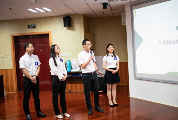 决赛现场精彩纷呈,惊喜不断。4支队伍围绕《“以众人之私 成众人之公”——华为基于为奋斗者买单的股权激励》的案例进行阐述与分析,将理论与实践相结合,提出了切实的问题,结合平时所学知识给出了相应的解决方案。在小pk和大pk环节,参赛队员们认真积极、耐心回答、配合默契、陈词精准、情绪激昂,彰显个人风采,展现团队精神,引起了评委和观众们的阵阵掌声。