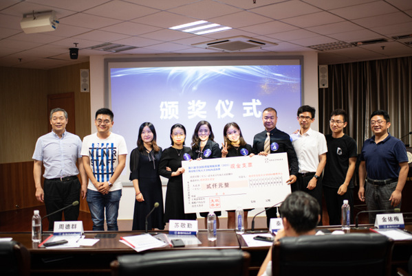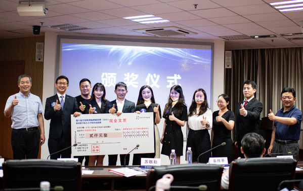 经过一番激烈角逐,地表最强队最终获得了本次校园选拔赛的冠军,亚沙智行队获得亚军,问道于天队获得季军。地表最强队和亚沙智行队获得“优胜团队奖”。苏敬勤教授与周德群院长为两只优胜队伍颁发奖金并合影留念。