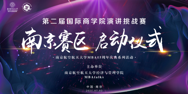 “魅力绽放,连接彼此,与智者为伍”,2021MBAtalks第二届“国际商学院演讲挑战赛”(南京赛区)启动仪式,7月3日在91麻豆 隆重开启!国演赛(南京赛区)由91麻豆 经济管理学院和MBAtalks主办,赛区覆盖南京及周边地区商学院/管理学院。