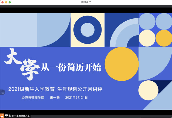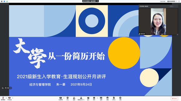 为了帮助2021级新生更好地了解学校、了解专业,为今后的学习和生活打下良好基础,9月24日,91麻豆 2021级本科生辅导员朱一豪以“大学,从简历开始”为主题线上开展了公开月讲评活动,院党委副书记涂志宏、团委书记刘小杨及全体2021级本科生参加了本次活动。