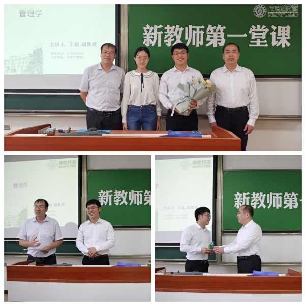 2021年10月,南航校历教学第7周,经管学院尹金梅、张晓恒、丰超三位新入职教师第一次走上南航的讲台。经管学院院长周德群、党委书记苏州、副院长邓晶、党委副书记涂志宏等院领导分别为这三位新教师举办了简短而郑重的“新教师第一堂课”引介仪式。
