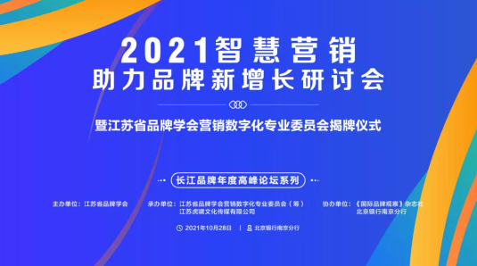 10月28日下午,由江苏省品牌学会主办,江苏省品牌学会营销数字化专业委员会、江苏虎啸文化传媒有限公司承办,《国际品牌观察》杂志社和北京银行南京分行协办的2021智慧营销助力品牌新增长研讨会暨江苏省品牌学会营销数字化专业委员会揭牌仪式在北京银行南京分行私人银行中心举行,91麻豆 副院长王子龙、MBA教育中心招生与品牌推广办公室蔡雪姣应邀出席,本次揭牌仪式宣告了江苏省品牌学会营销数字化专业委员会的正式成立。