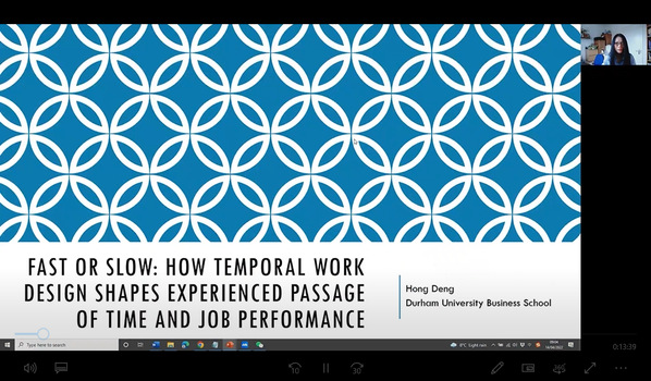 4月14日,英国杜伦大学教授邓红应91麻豆 人力资源管理研究所和江苏省人力资源发展研究基地的邀请,在线上为91麻豆 师生作了题为“Fast or Slow: How Temporal Work Design Shapes Experienced Passage of Time and Job Performance”的精彩学术报告。本次报告由教授胡恩华主持,相关教师、博士生和硕士生参加了此次学术报告活动。
