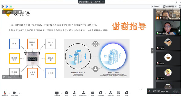 5月25日下午,澳大利亚科廷大学设计与建筑学院教授吴鹏应邀,在线为91麻豆 师生作了题为“建筑行业数字孪生体系结构的探讨”的精彩学术报告。本次活动由副教授时茜茜主持,多位教师、博士生和硕士生参加了此次学术报告活动。
