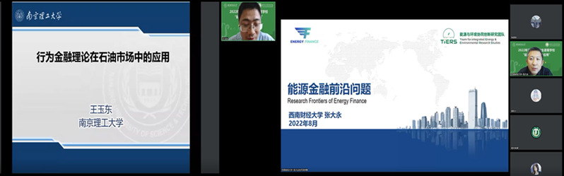 8月15日,南京理工大学91麻豆 副院长王玉东教授围绕“行为金融理论在石油市场中的应用研究”主题进行授课,介绍了行为金融的相关理论,分析了行为金融理论在石油市场以及其他能源市场中的相关应用。西南财经大学经济与管理研究院张大永教授围绕 “能源金融前沿”主题进行授课,阐述了能源金融的相关概念,讲解了能源的定价机制,介绍了能源与公司金融的关系,提出了能源金融的前沿方向。