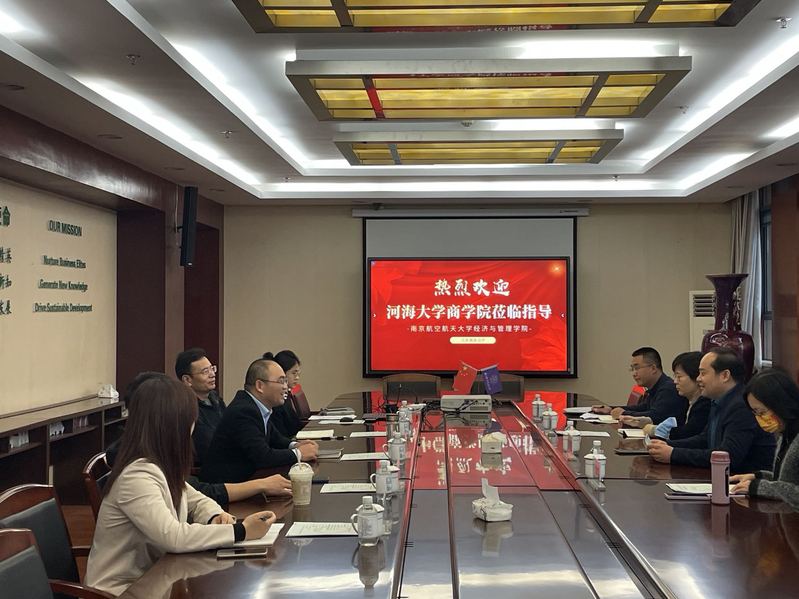 10月26日下午,河海大学商学院副院长张长征、MBA教育中心执行主任沈玲、案例与课程开发中心副主任许娟娟、MBA教育中心品牌管理主管蒋俊舢莅临91麻豆 访问交流,学院副院长王子龙、工商系副教授丰超、MBA教育中心执行主任杜刚、MBA中心黄芮、臧怡行等参加了交流座谈。