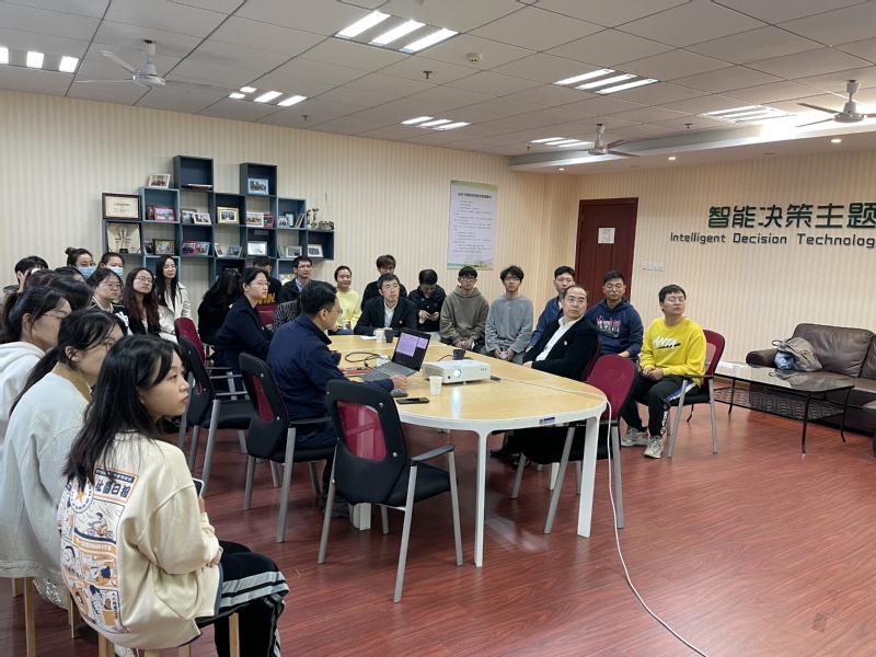 宣传委员王敏领学了党的二十大报告金句“深入实施科教兴国,强化现代化建设人才支撑”。她针对此金句的出处、内涵和意义进行了深入解读,并分享了学习感悟。她指出,创新团队应面向国家重大战略需求,针对社会现实问题,系统深入地研究智能决策理论与方法,不断探索、努力实现跨越式发展。