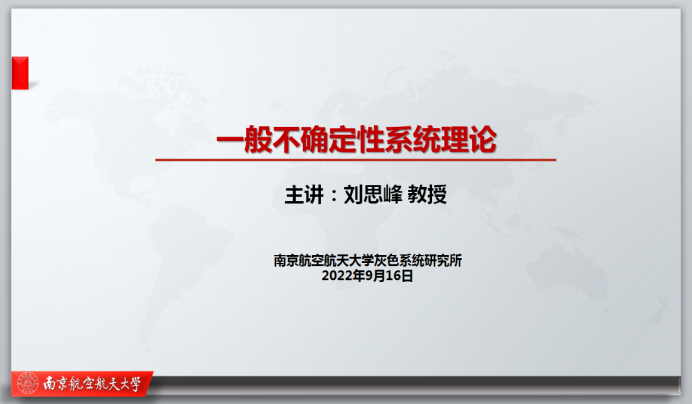 课程第一讲,刘思峰教授以《一般不确定性系统理论》为题,从可靠性的源起切入,分析可靠性数据的特点,提出了一般不确定性数据(GUD)和一般不确定性变量(GUV),引导有志者进入该领域,勠力同心破解航空航天重大装备可靠性增长难题。