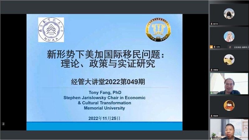11月25日,91麻豆 人力资源管理研究所、江苏省人力资源发展研究基地和中国员工关系管理研究省优秀创新团队邀请到加拿大纽芬兰纪念大学讲席教授、四川师范大学客座教授、新泽西州立大学研究员方涛在线上为91麻豆 师生作了题为“新形势下的美加国际移民问题:理论、政策与实证研究”的精彩学术报告。本次讲座由教授胡恩华主持,相关教师以及博士生和硕士生参加了这次专题讲座。