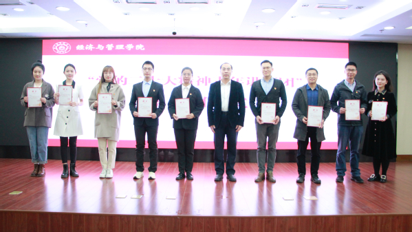 学习宣传贯彻党的二十大精神是当前和今后一段时期内的首要政治任务,为推动形成专家宣讲辅导、领导带头宣讲、教师主动宣讲、学生骨干参与宣讲的良好宣传宣讲氛围,学院成立由青年教师和学生组成的“党的二十大精神青年讲师团”和由学院全体专兼职辅导员组成的“党的二十大精神辅导员宣讲团”。苏州和吴宏分别为青年讲师团和辅导员宣讲团成员代表颁发聘书。成员们将组织集中备课,并面向学院广大师生开展集中宣讲,以同学们“听得懂、愿意听”的方式宣讲党的二十大精神。