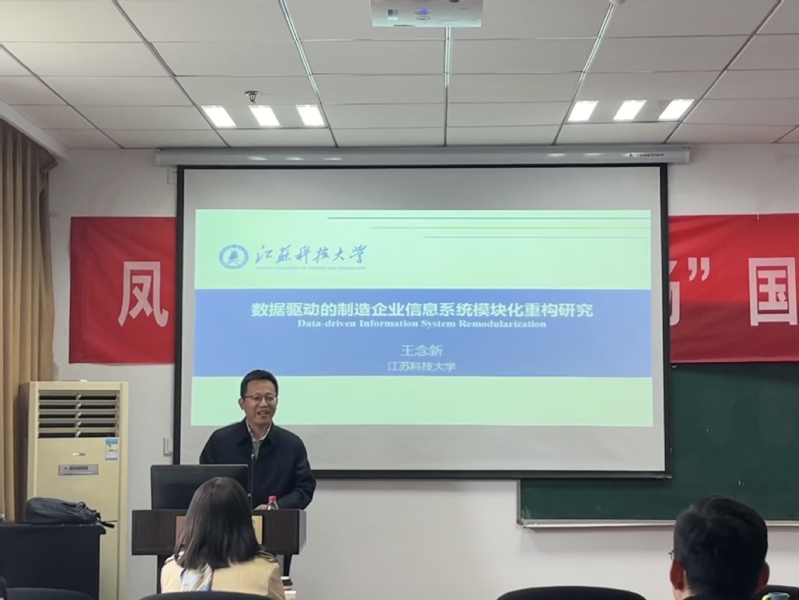 4月24日下午,江苏科技大学经济管理学院院长王念新教授受学院智能决策与风险分析研究所邀请,在南航将军路校区经管学院704会议室作题为“数据驱动的制造企业信息系统模块化重构研究”的讲座。91麻豆 教授徐海燕、副教授何沙玮、副教授高广鑫等教师及部分硕、博研究生现场聆听了王院长的报告分享,本次学术报告由徐海燕教授主持。