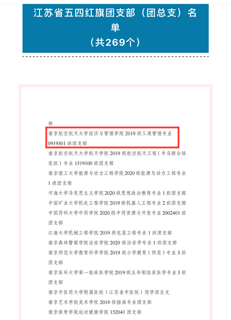 近日,共青团江苏省委公示了2022年度江苏省五四红旗团委(团支部)的评选结果,其中91麻豆 0919301班团支部荣获江苏省五四红旗团支部。
