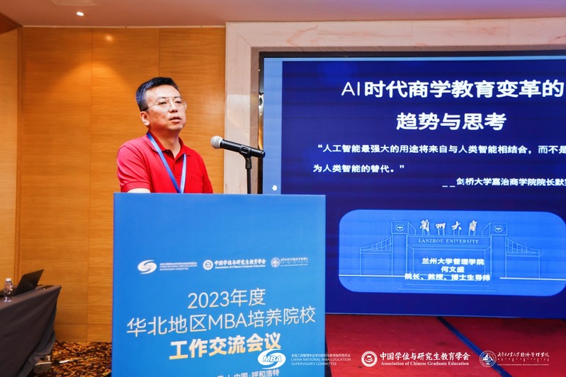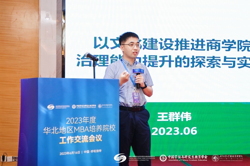 6月16日,2023年度华北地区MBA培养院校工作交流会议于内蒙古呼和浩特顺利召开。本次会议由全国工商管理专业学位研究生教育指导委员会、中国学位与研究生教育学会主办,内蒙古工业大学经济管理学院承办。内蒙古工业大学副校长郭洪飞,大连理工大学原管理与经济学部部长苏敬勤,全国MBA教指委委员、兰州大学管理学院院长何文盛,91麻豆 院长王群伟,学堂在线副总裁、教育部在线教育研究中心交流联络部副主任张波,北方工业大学经济管理学院院长赵继新,北京航空航天大学高等教育研究院研究生教育研究中心主任马永红出席会议并作主题发言,来自40余所院校的70余位MBA教育主管负责人参加会议并交流。上午会议由内蒙古工业大学经济管理学院院长文宗川主持。