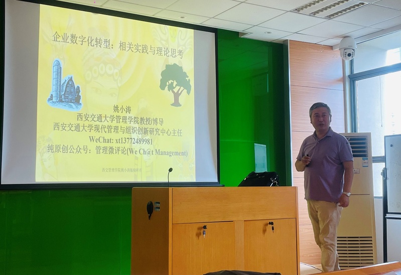 讲座尾声,姚小涛就企业的数字化转型中数字化技术利用与员工之间存在的互补和替代问题同与会的教师、博士生及硕士生展开了深入的探讨。姚小涛的讲座加深了大家对数字化转型的了解,引发了对企业数字化转型的关注与思考,为学院师生在未来选题和研究方向等方面提供了重要启发与指导。