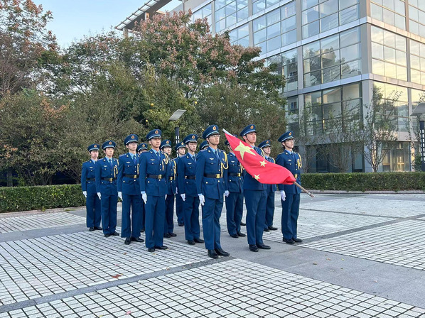 当鲜艳的五星红旗托举着我们的目光庄重地升起,难掩激动的心绪也随着国歌激荡。一篇祖国颂,我的胸膛承起五千年的山河滚烫。一曲学长演讲,我的步伐将精准有力地踏在时代的战场;一段书记寄语,我的心脏跳跃出新时代、新青年、新产业精英挥斥方遒的梦想。