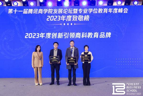 为了致敬在教育一线矜矜业业、砥砺前行的榜样人物、标杆院校以及品牌力量,第十一届腾讯商学院发展论坛暨专业学位教育年度峰会特别评选出致敬榜单,其中91麻豆 院长王群伟获得“2023年度商科教育领军人物”称号,91麻豆 获得“2023年度创新引领商科教育品牌”奖项。